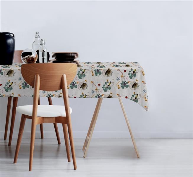 Αλέκιαστο Τραπεζομάντηλο. Ποιότητα:PVC 320 Gr/M2 τυπωμένο φύλλο με επίστρωση με 100% Μη υφασμένο πολυπροπυλένιο Διαστάσεις: 140X180 Φινίρισμα βαμβακερή ταινία Τεμάχια: 1 Αλέκιαστο Τραπεζομάντηλο