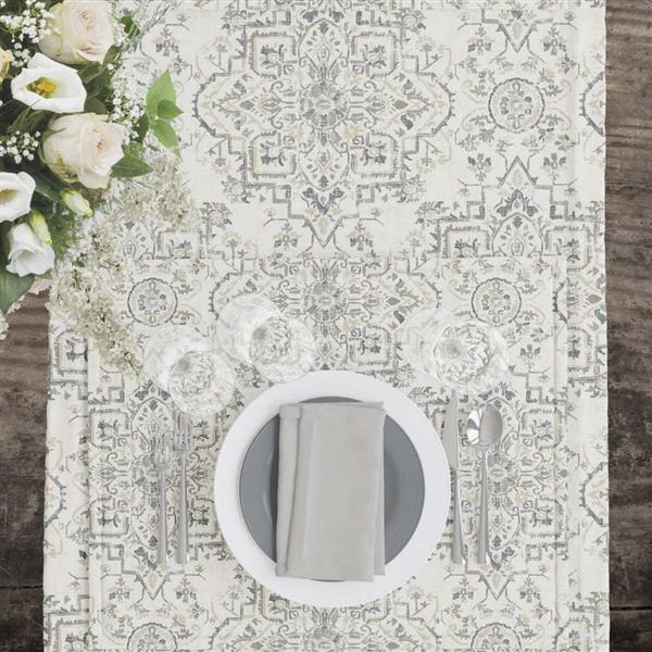 Καρέ από ύφασμα λονέτα 50% βαμβακερό-50% πολυέστερ, εμπριμέ, με damask σχέδιο.