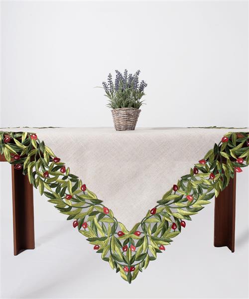 Τραπεζοκαρέ με ύφασμα και κοφτό σχέδιο με ελιά στη φάσα.