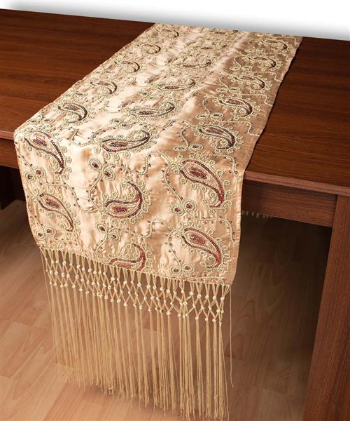 Σατέν τραβέρσα με πούλιες και κέντημα