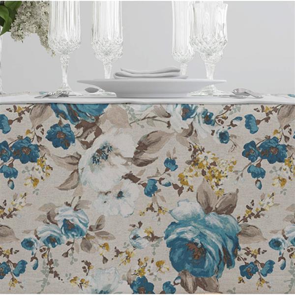 Καρέ από ύφασμα λονέτα 80% βαμβακερό-20% πολυέστερ, εμπριμέ, σχέδιο με παιώνιες.