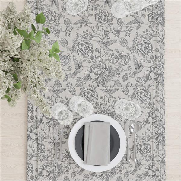Καρέ από ύφασμα λονέτα 80% βαμβακερό-20% πολυέστερ, εμπριμέ, σχέδιο με λουλούδια και πουλιά.
