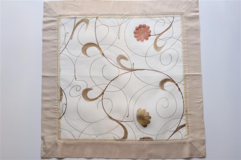 Κέντημα Σετ Ποιότητα:Οργαντίνα 100% Μετάξι,ζωγραφιά στο χέρι. Περιλαμβάνει: 1 Τραπεζοκαρέ 120X120 1 Καρέ 095X095 1 Τραβέρσα 050X150 2 Πετσετάκια 050X050