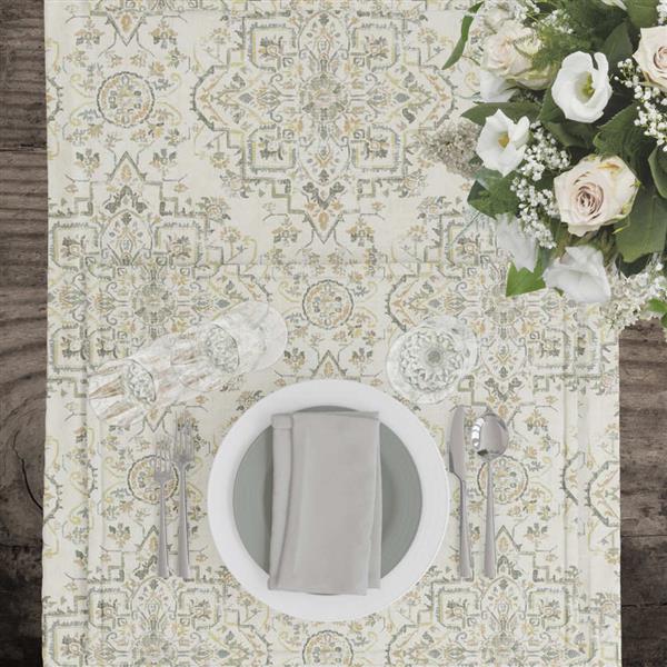 Τραβέρσα από ύφασμα λονέτα 50% βαμβακερό-50% πολυέστερ, εμπριμέ, με damask σχέδιο.