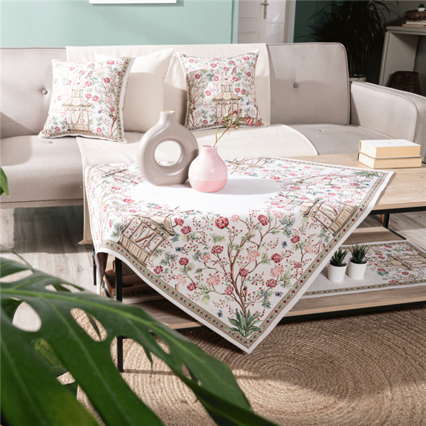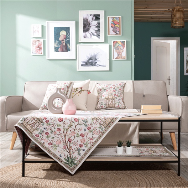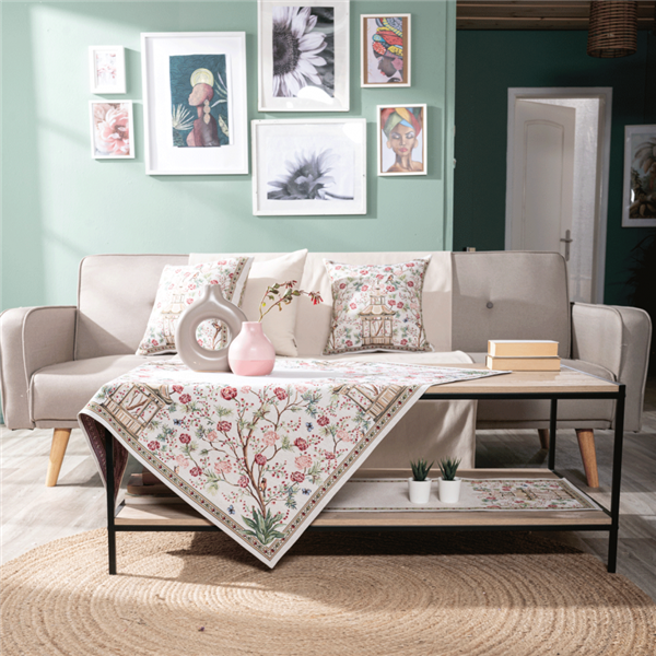 Τα υφάσματα υφαίνονται στην Ισπανία και μεταποιούνται από την εταιρία μας.Η σύνθεση του υφάσματος αποτελείται από νήματα ακρυλικά σε ποσοστό 40%, βαμβακερά σε ποσοστό 40% και πολυεστερικά σε ποσοστό 20%.Το συγκεκριμένο ύφασμα είναι γνωστό ως στόφα ή δαμάσκο.