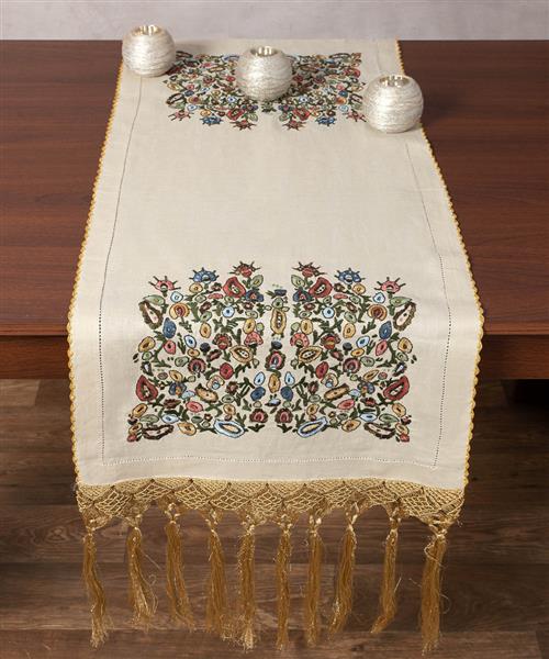 Χδειροποίητη τραβέρσα με μεταξωτή δεσιά και κέντημα