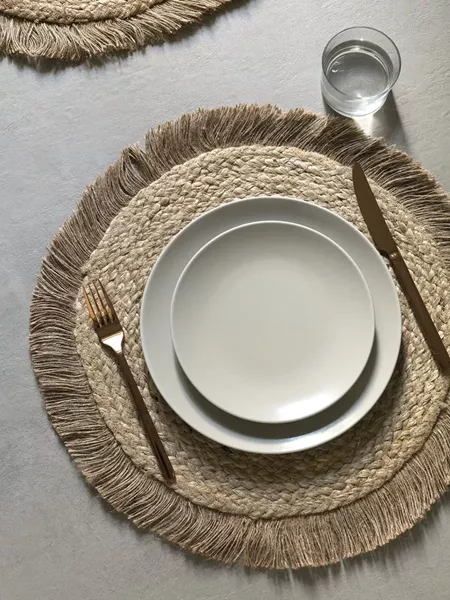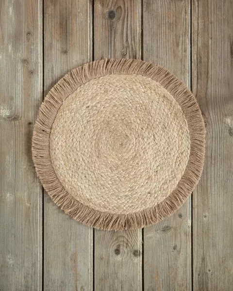 Στρογγυλό σουπλά με σύνθεση από 100% jute. Ένα διαφορετικό σουπλά που κατασκευάζεται εξ’ ολοκλήρου από ίνες φυσικού jute, δηλαδή από το φυτό γιούτα. Είναι ανθεκτικό, οικολογικό, φιλικό προς το περιβάλλον και βιοδιασπώμενο. Ιδανικό για να διακοσμήσετε το τραπέζι σε κάθε ιδιαίτερη περίσταση.