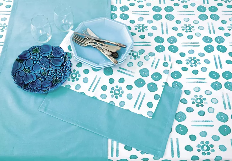 Δώστε στον χώρο της βεράντας ή της τραπεζαρίας σας καλοκαιρινή ατμόσφαιρα με μικρές καλαίσθητες πινελιές. Τα soupla cyclades, με το απλό γεωμετρικό μοτίβο σε τυρκουάζ αποχρώσεις που σας μεταφέρουν στις ονειρικές Κυκλάδες, είναι πολύ οικονομικά αλλά και πρακτικά αφού εξυπηρετούν το διπλό ρόλο του διακοσμητικού αλλά και προστατευτικού στοιχείου για το τραπέζι σας. Ενισχύστε την καλοκαιρινή εικόνα χρησιμοποιώντας τα σε συνδυασμό με τα μονόχρωμα deep aqua soupla. eίναι κατασκευασμένα από εξαιρετική ποιότητα 100% βαμβακερού υφάσματος με ύφανση twill, που εγγυάται μεγάλη αντοχή, και εύκολο σιδέρωμα.