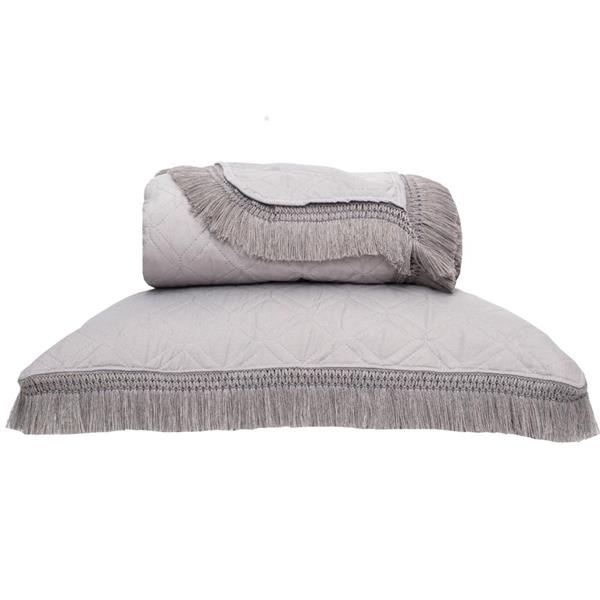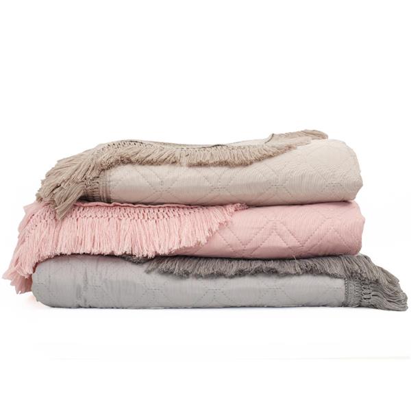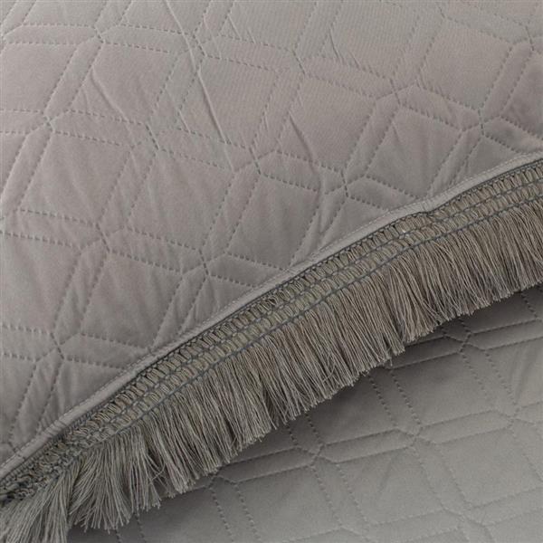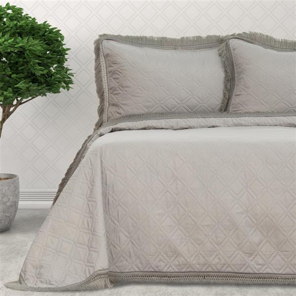 Σετ κουβερλί υπέρδιπλο με μαξιλαροθήκες oxford style από ύφασμα microfiber, 100% πολυέστερ, μονόχρωμο, με γραμμικό πολύγαζο σχέδιο και δαντέλα κρόσσι στην μπροστινή όψη και στις μαξιλαροθήκες. Διατίθεται σε 3 διαφορερικές αποχρώσεις.