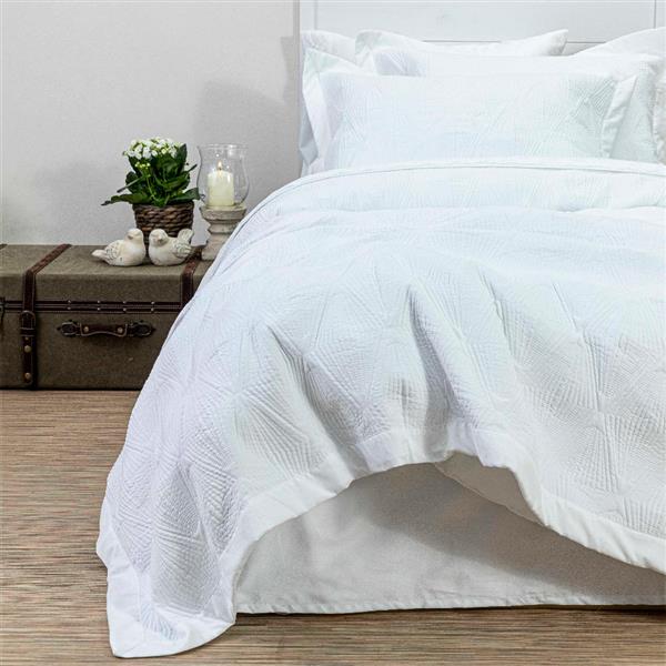 Σετ κουβερλί πολυτελείας, υπέρδιπλο, με μαξιλαροθήκες oxford style, από ύφασμα microfiber, 100% πολυέστερ, με γραμμικό, κεντημένο σχέδιο και μονόχρωμη μπορντούρα, χρώμα λευκό.