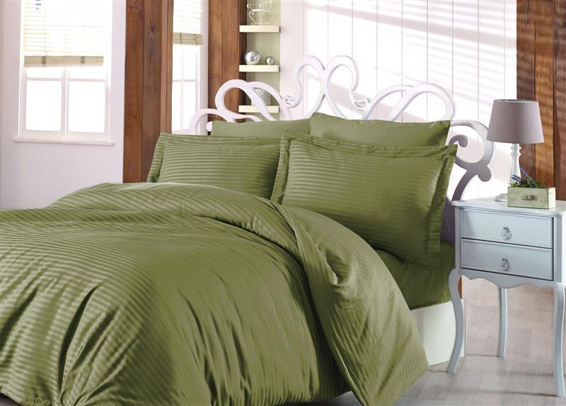 ΝΕΧΤ 3194 ΚΟΥΒΕΡΤΙΝΑ 100%CΟΤ SΑΤΙΝ SΤRΙΡΕ 220Χ240 - Olive