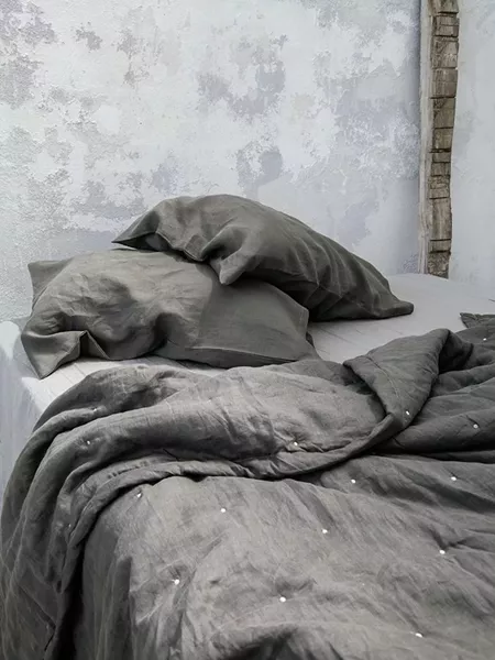 Το κουβερλί linen dark gray έχει μοντέρνο σκούρο γκρι χρώμα που λατρεύουν ακόμα και όσοι δεν επιλέγουν αυτή την παλέτα για το υπνοδωμάτιό τους. Επίσης, διατηρεί την αίσθηση του ανάγλυφου που είναι χαρακτηριστικό του λινού υφάσματος, χαρίζοντας έτσι μια ιδιαίτερη υφή στο κρεβάτι. Είναι μονόχρωμο και ταιριάζει πολύ εύκολα στο χώρο προσφέροντας μια πινελιά χρώματος. Συνδυάζεται εξαιρετικά με το λευκό και όλους τους τόνους του γκρι για μια σύγχρονη διακόσμηση, ιδανική για το Φθινόπωρο και τον Χειμώνα. Συνδυάστε το με ασορτί σεντόνι, μαξιλαροθήκες και παπλωματοθήκη για ένα ολοκληρωμένο αποτέλεσμα.