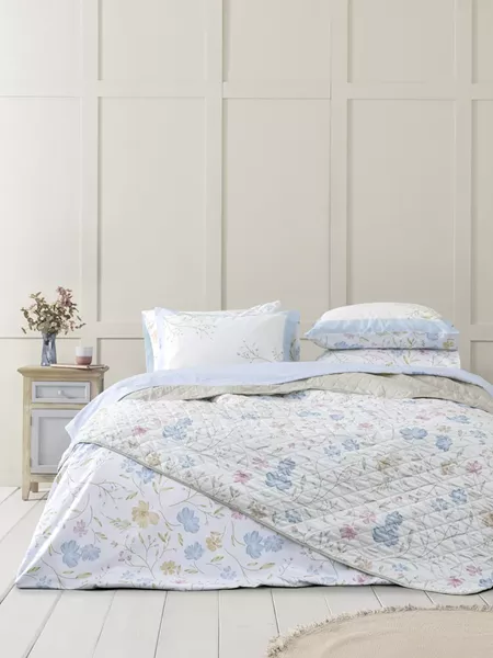 Το κουβερλί belleza έχει πλούσιο floral μοτίβο με υπέροχα άνθη σε παστέλ αποχρώσεις που δημιουργεί μια ατμόσφαιρα χαράς και ενέργειας. Τα πολύχρωμα λουλούδια, με την ρεαλιστική τους απεικόνιση, "ξυπνούν" ευχάριστα τις αισθήσεις, ενώ οι απαλές αποχρώσεις του ροζ, του μπλε, του κίτρινου και του πράσινου δημιουργούν μια αίσθηση ηρεμίας και χαλάρωσης. Το σχέδιο αυτό εντάσσεται στην τάση της soft romantic διακόσμησης, που έχει επανέλθει στην κορυφή των προτιμήσεων στη μόδα του σπιτιού, προσδίδοντας μια αίσθηση ρομαντισμού και φρεσκάδας στον χώρο σας. Επιλέξτε να το στρώσετε το με το αντίστοιχο βαμβακερό σετ σεντονιών belleza για να δημιουργήσετε ένα εντυπωσιακό αποτέλεσμα που θα αποπνέει ζωή και αισιοδοξία!