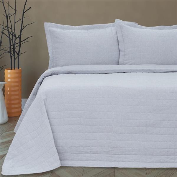 Κουβερλί υπέρδιπλο από ύφασμα microfiber, 100% πολυέστερ, μονόχρωμο, σε απομίμηση λινού, με γραμμικό πολύγαζο σχέδιο. Διατίθεται σε 2 διαφορερικές αποχρώσεις.
