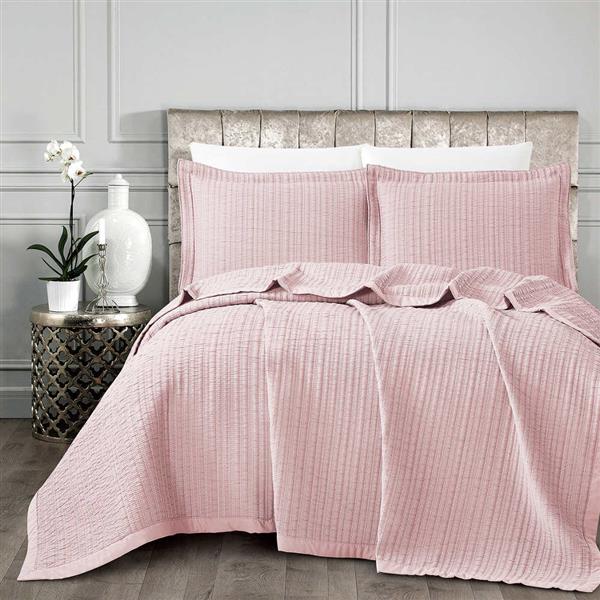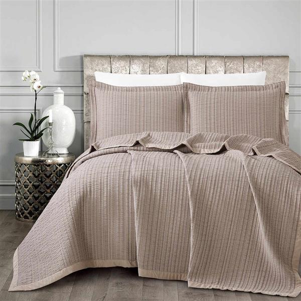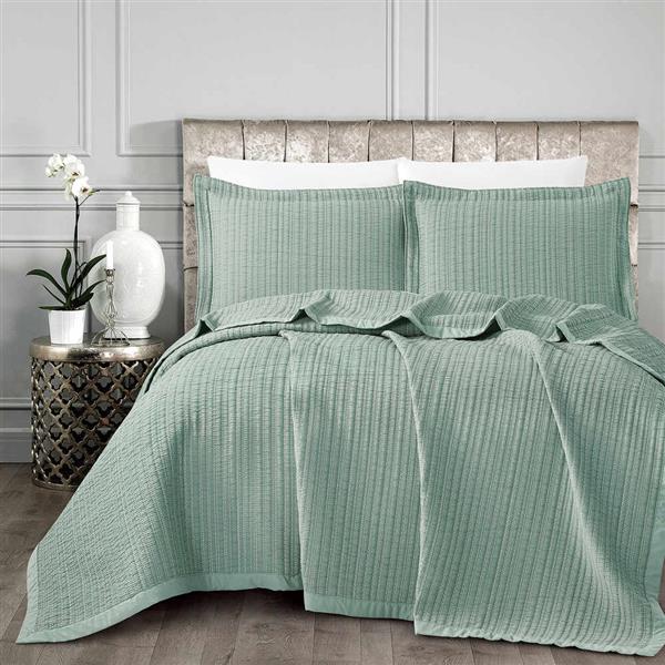 Σετ κουβέρτα καλοκαιρινή πολυτελείας υπέρδιπλη με μαξιλαροθήκες oxford style από ύφασμα ζακάρ, 100% πολυέστερ, με γραμμικό σχέδιο και μονόχρωμη φάσα, σχέδιο όνειρα, χρώμα βεραμάν.