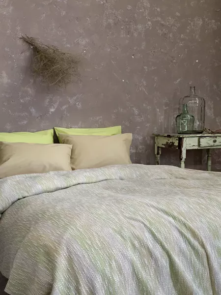 Η βαμβακερή κουβέρτα calida olive έχει χρώματα εμπνευσμένα από τη φύση του ελληνικού καλοκαιριού, το πράσινο της ελιάς συνδυάζεται με ζεστές μπεζ και γκρι αποχρώσεις σε ένα σύγχρονο ριγέ σχέδιο. Η ανάγλυφη υφή που της χαρίζει η jaquard ύφανσή της σε συνδυασμό με τα χρώματά της δημιουργούν ένα ξεχωριστό σχέδιο που θα αναδείξει το υπνοδωμάτιο. Το μεστό και γήινο πράσινο της ελιάς θα δημιουργήσει μια φυσική, ανεπιτήδευτη αίσθηση χαλάρωσης στον χώρο. Μπορεί να ταιριάξει όμορφα σε συνδυασμούς με άλλα γήινα χρώματα ή να τη συνδυάσετε με όποιο στιλ διακόσμησης ταιριάζει στο δικό σας υπνοδωμάτιο.
