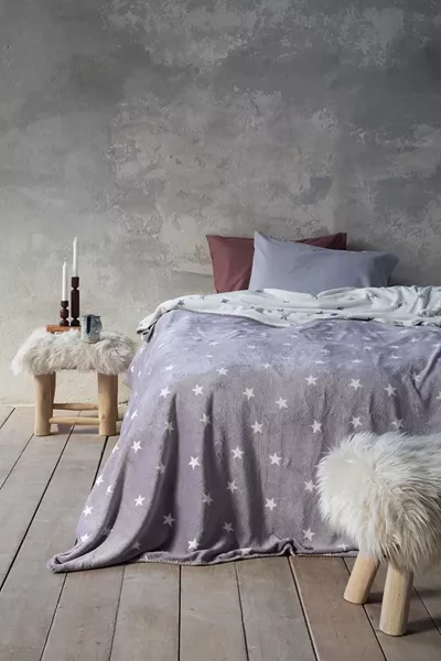 Η κουβέρτα stilla έχει υπέροχο τυπωτό σχέδιο με αστέρια σε ζεστή απόχρωση του γκρι συνδυασμένη με λευκό χρώμα. Έχει δύο όψεις και μπορεί να στρωθεί είτε από την γκρι, είτε από τη λευκή της πλευρά. Μια γλυκιά και ρομαντική επιλογή που θα ζεστάνει το υπνοδωμάτιο και θα δημιουργήσει μια χαλαρή αίσθηση, ιδανική για να απολαύσετε το χουχούλιασμα τις πιο κρύες εποχές του χρόνου.