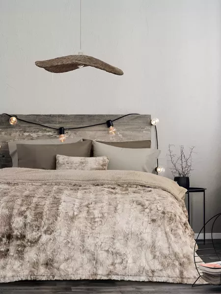 Η κουβέρτα διπλής όψης cloud σας προσφέρει την απόλυτη εμπειρία άνεσης και πολυτέλειας. Η εξωτερική της πλευρά με όψη γούνας,  έχει μια απαλή, αισθησιακή υφή που θα σας χαϊδεύει γλυκά. Η άλλη πλευρά διαθέτει το εξαιρετικά απαλό και ζεστό ύφασμα sherpa, ιδανικό για να σας τυλίγει σε μια απαλή, ζεστή αγκαλιά στις πιο κρύες νύχτες του χειμώνα.Οι ουδέτερες γήινες αποχρώσεις της κουβέρτας συνδυάζονται άψογα με κάθε στυλ διακόσμησης, ενώ το μοντέρνο σχέδιο της προσδίδει μια αίσθηση εκλεπτυσμένου γούστου στον χώρο σας. Είναι η τέλεια επιλογή για όποιον επιθυμεί να συνδυάσει την πολυτέλεια με την πρακτικότητα, κάνοντας τον χειμώνα σας πιο ζεστό και άνετο.