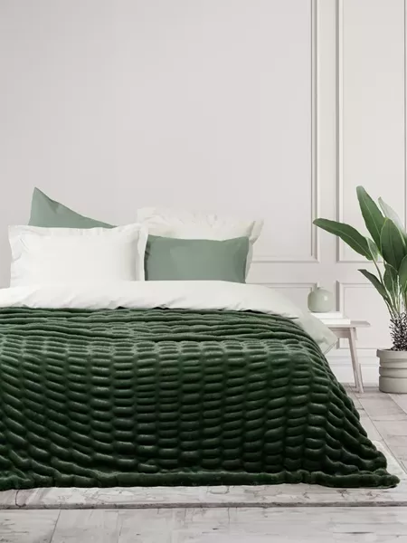 Η κουβέρτα διπλής όψης mossy light pink είναι σχεδιασμένη για να προσφέρει απαράμιλλη άνεση και στυλ, με κάθε λεπτομέρεια να αποπνέει φινέτσα. Η μπροστινή πλευρά, από jacquard rabbit fur, διαθέτει ένα εντυπωσιακό, ανάγλυφο γεωμετρικό μοτίβο που είναι ταυτόχρονα χνουδωτό και απαλό, σαν αληθινή γούνα. Η πίσω πλευρά, από mink fleece, είναι εξαιρετικά απαλή και ζεστή. Το ανάγλυφο μοτίβο σε συνδυασμό με το εκπληκτικό πράσινο χρώμα της προσθέτουν μια ζεστή και μοντέρνα πινελιά στον χώρο, κάνοντας την κουβέρτα mossy ιδανική για να διακοσμήσετε το κρεβάτι ή τον καναπέ σας.
