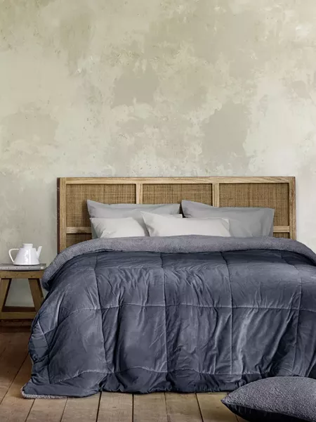 Το Κουβερτοπάπλωμα nuan dark gray συνδυάζει τη ζεστασιά και την πολυτέλεια με μια μοντέρνα αίσθηση. Η πάνω πλευρά του είναι κατασκευασμένη από βελουτέ υλικό, προσφέροντας απαλή και πολυτελή αίσθηση, ενώ η κάτω πλευρά είναι καλυμμένη με sherpa, παρέχοντας εξαιρετική θερμότητα και άνεση. Το σκούρο γκρι χρώμα του προσθέτει χαρακτήρα στο υπνοδωμάτιό σας. Το κουβερτοπάπλωμα αυτό είναι ιδανικό για τις πιο κρύες νύχτες, καθώς η πλούσια βελουτέ υφή του και η αφράτη και ζεστή αίσθηση της sherpa, εξασφαλίζoυν ένα πραγματικό χουχούλιασμα στο κρεβάτι σας.