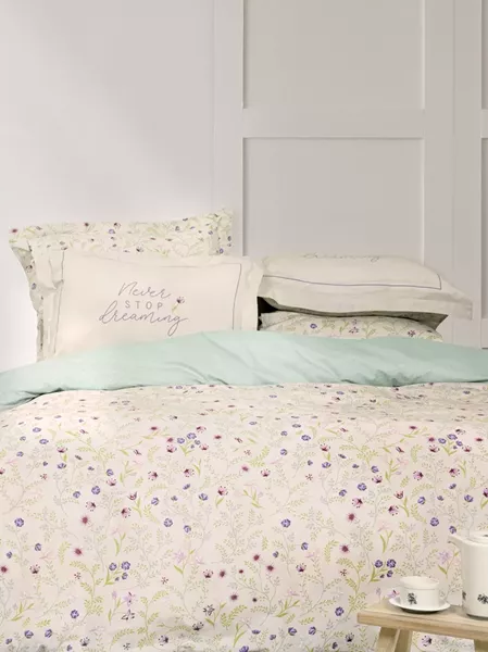 Οι βαμβακερές μαξιλαροθήκες dream garden έχουν πάνελ σχέδιο στην μια πλευρά με εκλεπτυσμένη ρομαντική διάθεση. Το κεντρικό στοιχείο του σχεδίου είναι η τυπωμένη φράση "never stop dreaming" με εκλεπτισμένη γραμματοσειρά για ένα ενδιαφέρον και σύγχρονο αποτέλεσμα. Η πίσω όψη της έχει ένα διακριτικό floral μοτίβο που ενισχύει την ρομαντική της εικόνα. Οι μαξιλαροθήκες είναι τύπου oxford 4 πλευρών, που σημαίνει ότι διαθέτουν ένα διακοσμητικό περίγραμμα σε όλες τις πλευρές τους. Αυτό το χαρακτηριστικό της δίνει ένα πιο γεμάτο σχήμα και μια πιο κομψή εμφάνιση, αναδεικνύοντας το κρεβάτι σας. Συνδυάσετε τις με το ίδιο σετ σεντονιών ή και με μονόχρωμα σεντόνια και δώστε μια αίσθηση γαλήνης και φρεσκάδας στην κρεβατοκάμαρά σας.