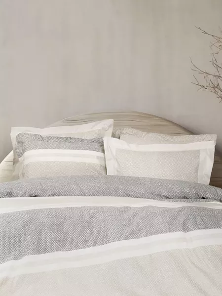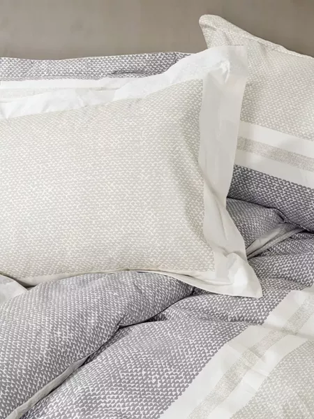 Οι βαμβακερές μαξιλαροθήκες lido έχουν λιτό γεωμετρικό σχεδιασμό, που προσφέρει μια αίσθηση τάξης και κομψότητας, κάνοντάς τις ιδανικές για κάθε υπνοδωμάτιο. Η πάνω τους όψη έχει ένα λιτό πάνελ σχέδιο, που φιλοξενεί στο εσωτερικό του μια πλούσια υφή που θυμίζει όψη καμβά. Αυτή η λεπτομέρεια δίνει στο προϊόν μια αίσθηση φυσικότητας και βάθους. Η δεύτερη όψη τους έχει καρό μοτίβο με επίσης καθαρές γραμμές που τονίζουν την καθαρότητα του σχεδίου.Η, ενώ η συνολική αρμονία των χρωμάτων του, του μπεζ, του γκρι και του λευκού, δημιουργεί μια ήρεμη και φιλόξενη ατμόσφαιρα.  Οι μαξιλαροθήκες έχουν τελείωμα oxford με ένα φαρδύ, διακοσμητικό περίγραμμα, που τους δίνει μια πιο πολυτελή και "γεμάτη" όψη. Η χρωματική τους παλέτα κινείται σε ήπιους και ουδέτερους τόνους του γκρι και του μπεζ, τονίζοντας την διαχρονικότητα του σχεδίου.