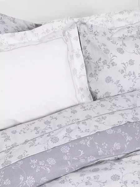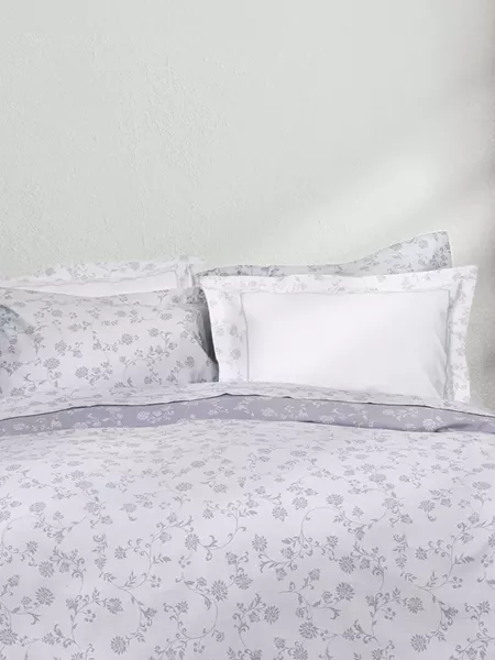Οι βαμβακερές μαξιλαροθήκες sirena έχουν λιτό πάνελ μοτίβο, όπου ένα ρομαντικό floral μοτίβο με vintage αισθητική που θυμίζει περίτεχνα κεντήματα, αναπτύσεται στην περιμετρική φάσα, ενώ το κέντρο της μαξιλαροθήκης παραμένει λευκό. Η δεύτερη όψη της έχει all over μοτίβο, με λεπτεπίλεπτα λουλούδια σε αποχρώσεις του γκρι και του λιλά να απλώνονται σε ένα φωτεινό φόντο. Οι μαξιλαροθήκες έχουν τελείωμα oxford με ένα φαρδύ, διακοσμητικό περίγραμμα, που τους δίνει μια πιο πολυτελή και "γεμάτη" όψη. Η χρωματική τους παλέτα και η φίνα κατασκευή τους, τονίζει την διαχρονικότητα και πολυτέλειά τους.