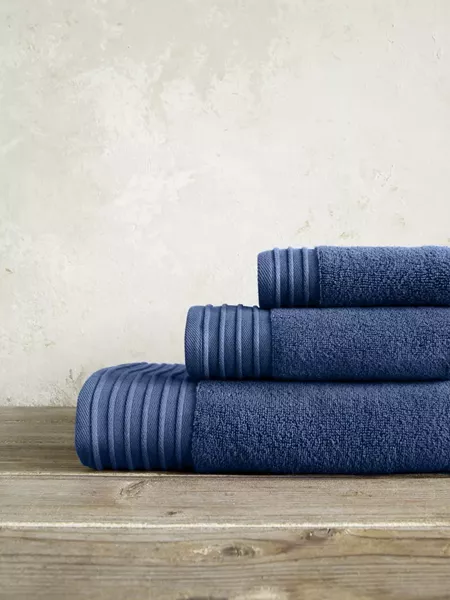 Η βαμβακερή πετσέτα feel fresh aegean blue σε βαθύ μπλέ χρώμα, θα ξεχωρίσει με την υφή και την ποιότητά της. Αποτελεί μια διαχρονική επιλογή μονόχρωμης πετσέτας με διακριτικό ανάγλυφο ριγέ σχέδιο στο τελείωμα. Προσφέρεται σε 3 διαστάσεις, χεριών, προσώπου και μπάνιου ώστε να δημιουργήσετε ομοιομορφία και ενιαία χρωματική παλέτα στον χώρο.
