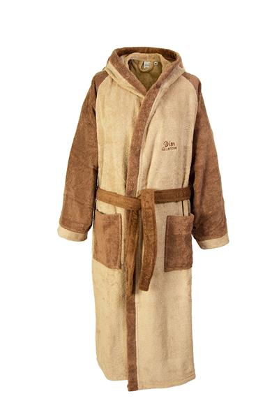 Μπουρνούζι με κουκούλα και Raglan μανίκια,δύο χρωμάτων κατασκευασμένο από Πετσέτα πενιέ 450 gsm βαμβάκι 100% υψηλής απορροφητικότητας-Συσκευασία Δώρου Κουτί Πολυτελείας.