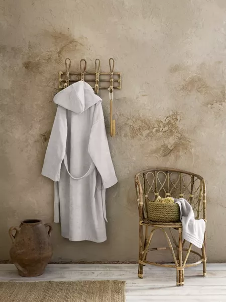 to βαμβακερό μπουρνούζι με κουκούλα zen oat beige έχει ουδέτερο μπεζ χρώμα που μπορεί να ταιριάξει υπέροχα σε οποιοδήποτε μπάνιο σε αντίστοιχη χρωματική παλέτα ή συνδυάζοντάς το με άλλα χρώματα ανάλογα με το στιλ που σας αρέσει. Χάρη στην απαλότητά του θα σας δώσει την αίσθηση ότι το καθημερινό σας ντους γίνεται μια χαλαρωτική εμπειρία spa. Προσφέρεται σε πέντε διαφορετικά μεγέθη (small, medium, large, extra large και xx large), υπέροχο για δώρο στον εαυτό μας ή σε κάποιο αγαπημένο μας πρόσωπο.