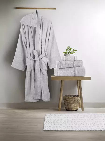 to βαμβακερό jacquard μπουρνούζι spa είναι ένα κομψό και άνετο μπουρνούζι που θα σας τυλίξει σε μια αγκαλιά ζεστασιάς και χαλάρωσης μετά το μπάνιο ή το ντους. Η jacquard επεξεργασία του, προσφέρει μια ανάγλυφη υφή, ενώ αποπνέει πολυτέλεια και φινέτσα. Το διαχρονικό γκρι χρώμα του μπουρνουζιού "spa" είναι μια εξαιρετική επιλογή για άνδρες και γυναίκες και ταιριάζει με όλα τα στυλ και τις διακοσμητικές επιλογές. Διαθέτει προσεγμένα τελειώματα με υφαντές γραμμικές μπορντούρες στην πατιλέτα, την ζώνη και το τελείωμα στις τσέπες, που αναδεικνύουν την υψηλή ποιότητα κατασκευής του. Περιποιηθείτε τον εαυτό σας με το βελουτέ μπουρνούζι "spa" και απολαύστε την απόλυτη αίσθηση χαλάρωσης και πολυτέλειας!