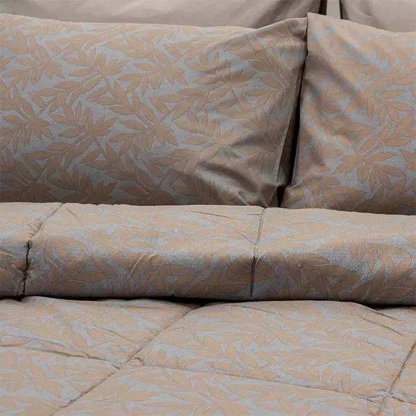 Πάπλωμα Leafy Coral της εταιρείας Lino! Το πάπλωμα Leafy διαθέτει ένα μοντέρνο σχέδιο με γκρι βάση και μπεζ φύλλα, το οποίο συνδυάζει φυσικά μοτίβα με μίνιμαλ αισθητική, προσφέροντας άνεση και στυλ στην κρεβατοκάμαρά σας. To πάπλωμα Leafy διακρίνεται ωστόσο για την ποιότητά του, καθώς είναι κατασκευασμένο από 100% βαμβακερό ύφασμα, 150TC, το οποίο το καθιστά ιδιαίτερο πυκνό και ανθεκτικό, ιδανικό για όσους επιθυμούν μία φυσικά αίσθηση απαλότητας στον ύπνο τους. Η νέα ολοκληρωμένη σειρά υπνοδωματίου της εταιρείας Lino,χαρακτηρίζεται από συνδυασμό σχεδίων και μοτίβων που μπορούν να ταιριάξουν εύκολα τόσο σε ένα μοντέρνο, όσο και σε κλασικό χώρο.