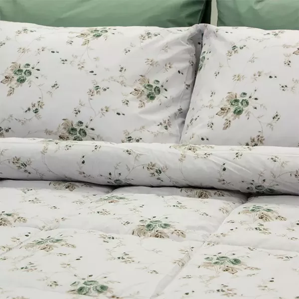 Πάπλωμα Rosalie Green της εταιρείας Lino! Το πάπλωμα Rosalie διαθέτει υπέροχο floral σχέδιο, με λευκή βάση και διακριτικό κόκκινο λουλουδάκι που συνδυάζεται εύκολα σε κάθε διακόσμηση, προσφέροντας άνεση και στυλ στην κρεβατοκάμαρά σας. To πάπλωμα Rosalie διακρίνεται ωστόσο για την ποιότητά του, καθώς είναι κατασκευασμένο από 100% βαμβακερό ύφασμα, 150TC, το οποίο το καθιστά ιδιαίτερα πυκνό και ανθεκτικό, ιδανικό για όσους επιθυμούν μία φυσική αίσθηση απαλότητας στον ύπνο τους. Η νέα ολοκληρωμένη σειρά υπνοδωματίου της εταιρείας Lino,χαρακτηρίζεται από συνδυασμό σχεδίων και μοτίβων που μπορούν να ταιριάξουν εύκολα τόσο σε ένα μοντέρνο, όσο και σε κλασικό χώρο.