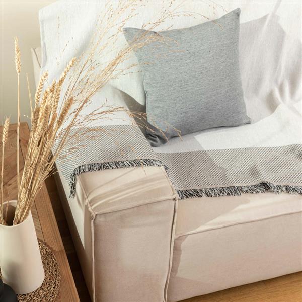 Καλοκαιρινό ριχτάρι τετραθέσιο, από ύφασμα 100% βαμβακερό,μονόχρωμο με μπορντούρα και κρόσσι. Διαθέσιμο σε 3 διαφορετικά χρώματα.