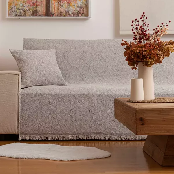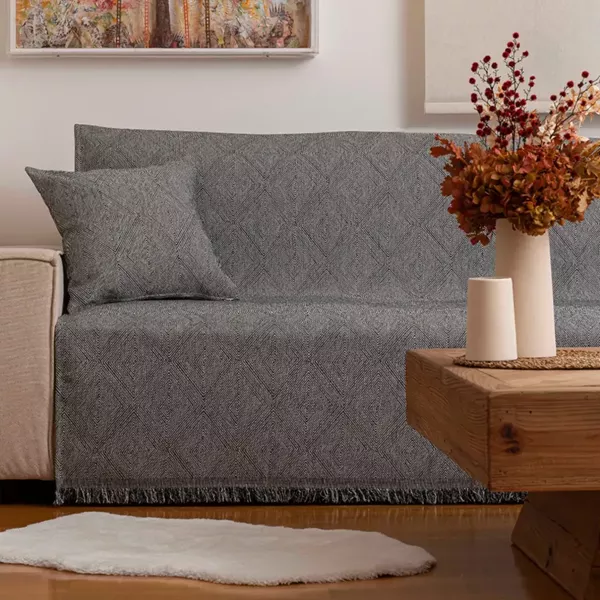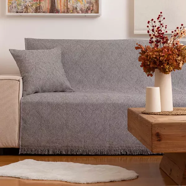 Χειμερινό ριχτάρι μονοθέσιο, από ύφασμα σενίλ, 100% πολυέστερ, εμπριμέ με κρόσσι. Διαθέσιμο σε 5 διαφορετικά χρώματα.