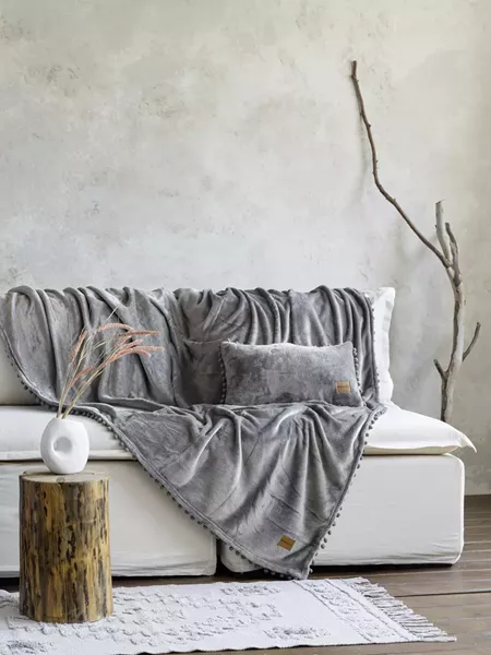 Το ριχτάρι macia gray με διαχρονικό γκρι χρώμα και εκπληκτική βελούδινη υφή, θα ξεχωρίσει αμέσως στο σαλόνι.Το διακριτικά μικρά pom pom που το στολίζουν περιμετρικά, δίνουν μια extra υφή και κάνουν το τελείωμά τους ξεχωριστό. Διατίθεται σε τρεις διαστάσεις για μονοθέσιο, διθέσιο και τριθέσιο καναπέ. Μονόχρωμο και ιδιαίτερο, θα δημιουργήσει μια χαλαρή, άνετη ατμόσφαιρα στο σπίτι χαρίζοντας χρώμα και στιλ. Ιδανική επιλογή για όμορφες βραδιές χαλάρωσης στον καναπέ.