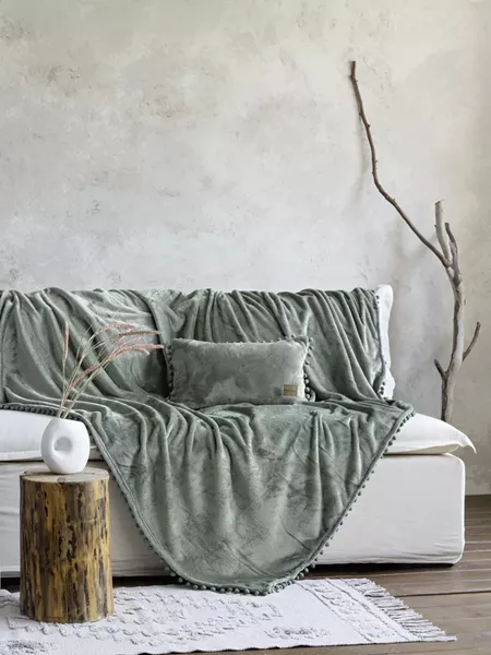 Το ριχτάρι macia sage green με μοναδικό Πράσινο χρώμα και εκπληκτική βελούδινη υφή, θα ξεχωρίσει αμέσως στο σαλόνι.Το διακριτικά μικρά πομ πομ που το στολίζουν περιμετρικά, δίνουν μια extra υφή και κάνουν το τελείωμά τους ξεχωριστό. Διατίθεται σε τρεις διαστάσεις για μονοθέσιο, διθέσιο και τριθέσιο καναπέ. Μονόχρωμο και ιδιαίτερο, θα δημιουργήσει μια χαλαρή, άνετη ατμόσφαιρα στο σπίτι χαρίζοντας χρώμα και στιλ. Ιδανική επιλογή για όμορφες βραδιές χαλάρωσης στον καναπέ.