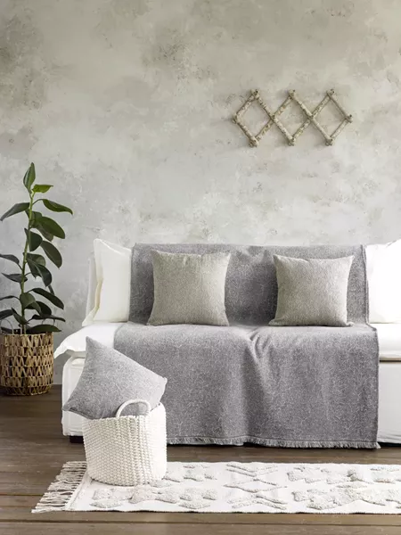 to ριχτάρι satori gray σε μοντέρνα απόχρωση του γκρι έχει ένα minimal floral μοτίβο που αναδεικνύεται με την υπέροχη ύφανσή του. Η απαλή του υφή και το τελείωμα με τα διακριτικά κρόσσια αναβαθμίζουν την εικόνα του. Ένα μονόχρωμο ουσιαστικά ριχτάρι με ζεστή αίσθηση που ταιριάζει όμορφα στο καθιστικό δημιουργώντας ιδανική χειμωνιάτικη ατμόσφαιρα. Χάρη στη μονοχρωμία του προσφέρει ευελιξία στη διακόσμηση και μπορεί να συνδυαστεί με πολλά διαφορετικά χρώματα και στιλ.