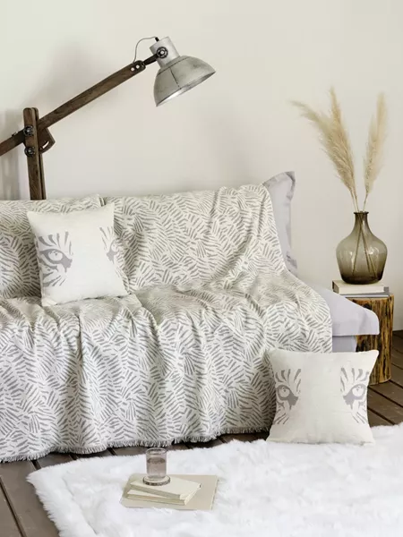 to ριχτάρι lebrand ivory σε αρχοντικό εκρού χρώμα, συνδυάζει την κομψότητα με τη ζωντάνια του animal print. Το ριχτάρι διαθέτει έναν διακριτικό αλλά εντυπωσιακό animal print σχέδιο, που προσδίδει βάθος και υφή στον χώρο σας. Συνδυάστε το με τα διακοσμητικά μαξιλαράκια με το καλλιτεχνικό μοτίβο του ματιού της ζέβρας, που  προσθέτουν μια πινελιά εξωτικού χαρακτήρα και ανανέωσης. Η ιδιαίτερη υφή του ριχταριού, σε συνδυασμό με το μοναδικό του σχέδιο, χαρίζουν στον χώρο σας την πολυτέλεια και την κομψότητα που του αξίζει.