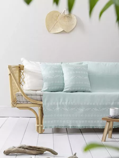 to Ριχτάρι raiza petrol έχει σώμα με απλή ύφανση τύπου ψάθας, που προσδίδει μια αίσθηση φυσικής κομψότητας και ανάλαφρης αισθητικής, ενώ στο τελείωμά του, διαθέτει φάσα με ethic γεωμετρικό μοτίβο που θα δώσει στυλ και προσωπικότητα στο καθιστικό σας. to φινίρισμά του έχει κοντά διακριτικά κρόσσια που δίνουν μια αίσθηση κίνησης. Η χρωματική παλέτα του ριχταριού raiza petrol κινείται στους δροσερούς τόνους του πετρόλ και του εκρού, ενισχύοντας την ανοιξιάτικη και καλοκαιρινή διάθεση στον χώρο. Συνδυάστε το με ασορτί διακοσμητικά μαξιλάρια raiza petrol ή προσθέστε και μαξιλάρια διαφορετικού στυλ ώστε να δώσετε το ύφος που εσείς επιθυμείτε στον χώρο σας.