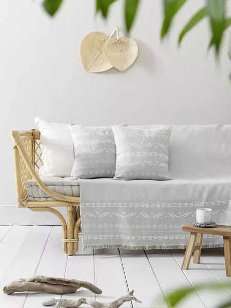 to Ριχτάρι raiza gray έχει σώμα με απλή ύφανση τύπου ψάθας, που προσδίδει μια αίσθηση φυσικής κομψότητας και ανάλαφρης αισθητικής, ενώ στο τελείωμά του, διαθέτει φάσα με ethic γεωμετρικό μοτίβο που θα δώσει στυλ και προσωπικότητα στο καθιστικό σας. to φινίρισμά του έχει κοντά διακριτικά κρόσσια που δίνουν μια αίσθηση κίνησης. Η χρωματική παλέτα του ριχταριού raiza gray κινείται στους δροσερούς τόνους του γκρι και του εκρού, ενισχύοντας την ανοιξιάτικη και καλοκαιρινή διάθεση στον χώρο. Συνδυάστε το με ασορτί διακοσμητικά μαξιλάρια raiza gray ή προσθέστε και μαξιλάρια διαφορετικού στυλ ώστε να δώσετε το ύφος που εσείς επιθυμείτε στον χώρο σας.