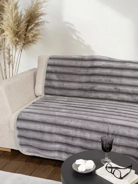 Το αντιολισθητικό ριχτάρι καναπέ lunetta gray συνδυάζει μοναδική κομψότητα με πρακτικότητα. Η μπροστινή πλευρά του, από εξαιρετικά απαλό rabbit fur 480 gr, διαθέτει ανάγλυφη ριγέ υφή με διακριτικό κυματιστό μοτίβο, που δημιουργεί μια αίσθηση κίνησης και ζεστασιάς στον χώρο. Το μοναδικό παιχνίδι φωτός και σκιάς πάνω στην επιφάνειά του κάνει το ριχτάρι ακόμα πιο εντυπωσιακό, χαρίζοντας βάθος και στυλ στη διακόσμηση. Η πίσω πλευρά, από αντιολισθητικό suede 180 gr, εξασφαλίζει τέλεια σταθερότητα ώστε να μένει πάντα στη θέση του, ενώ το διαχρονικό γκρι χρώμα του ταιριάζει εύκολα σε πολλά σαλόνια, από minimal μέχρι πιο κλασικά. Ιδανικό για cozy απογεύματα, αλλά και για να ανανεώσεις τον καναπέ σου εύκολα και γρήγορα.