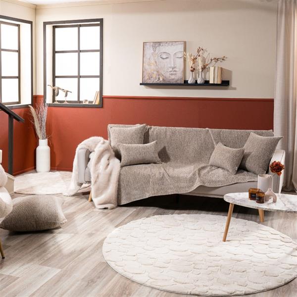 Τα υφάσματα υφαίνονται στην Ελλάδα από ελληνική υφαντουργία και μεταποιούνται από την εταιρία μας.Η σύνθεση του υφάσματος των ριχταριών αποτελείται από νήματα ακρυλικά σε ποσοστό 48%,βαμβακερά σε ποσοστό 30% και πολυεστερικά σε ποσοστό 22%.
