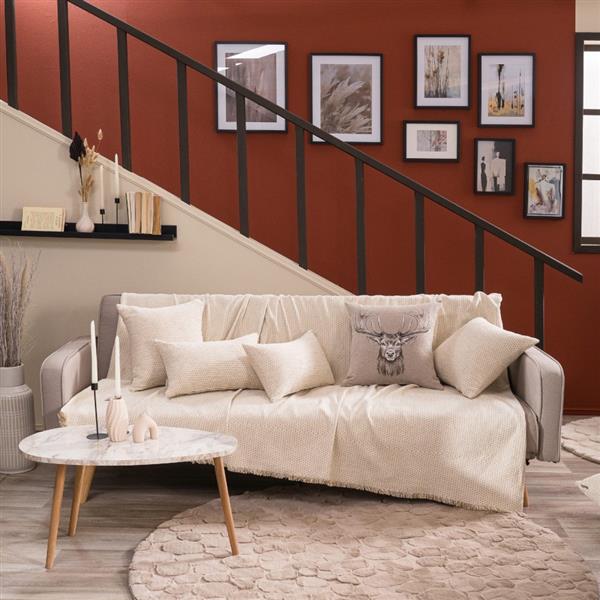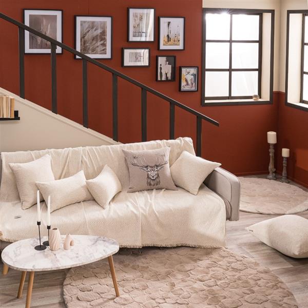 Τα υφάσματα υφαίνονται στην Ελλάδα από ελληνική υφαντουργία και μεταποιούνται από την εταιρία μας.Η σύνθεση του υφάσματος των ριχταριών αποτελείται από νήματα ακρυλικά σε ποσοστό 48%,βαμβακερά σε ποσοστό 30% και πολυεστερικά σε ποσοστό 22%.