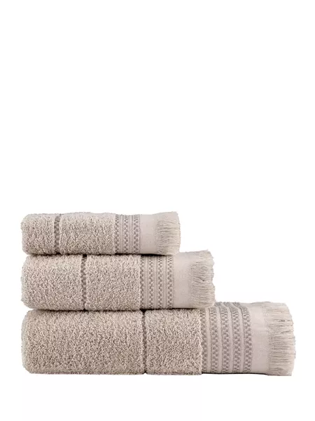 Το βαμβακερό σετ πετσέτες plush pink έχει πλούσια ζακάρ ύφανση με γραμμικό μοτίβο που αναδεικνύεται υπέροχα με το πουδρέ ροζ χρώμα της αλλά και τις όμορφες υφές της πετσέτας. mια γεωμετρική jacquard φάσα και διακριτικά κρόσια στολίζουν το τελείωμά της. Προσφέρεται σε σετ τριών τεμαχίων που περιλαμβάνει μία πετσέτα χεριών μια προσώπου και μια μπάνιου. Δώστε στο μπάνιο σας την ανανέωση και το χρώμα που χρειάζεται ή δωρίστε σε φίλους αυτό το υπέροχο σετ.