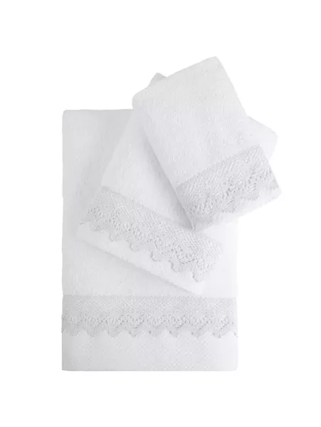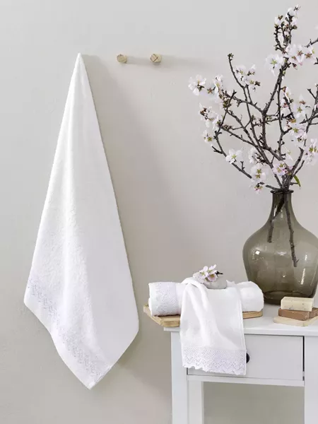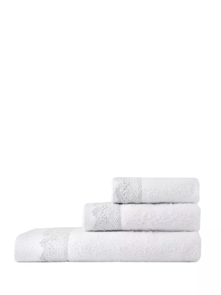 Σετ Πετσέτες με δαντέλα με σύνθεση από 100% βαμβάκι βάρους 480 gsm. Έχουν πλούσια, αφράτη υφή και εξαιρετικά απαλή αίσθηση. Χάρη στη βαμβακερή τους σύνθεση αναπνέουν φυσικά, είναι πολύ απορροφητικές, υποαλλεργικές και φιλικές προς το δέρμα. Προσφέρουν άνετο στέγνωμα μετά το ντους ή το μπάνιο. Είναι ιδανικές για να στολίσετε το μπάνιο σας αλλά και για χρήση καθώς έχουν μεγάλη αντοχή στον χρόνο καθώς διατηρούν το σχήμα και το χρώμα τους ακόμα και μετά από πολλές πλύσεις, χωρίς να απαιτούν ιδιαίτερη φροντίδα.