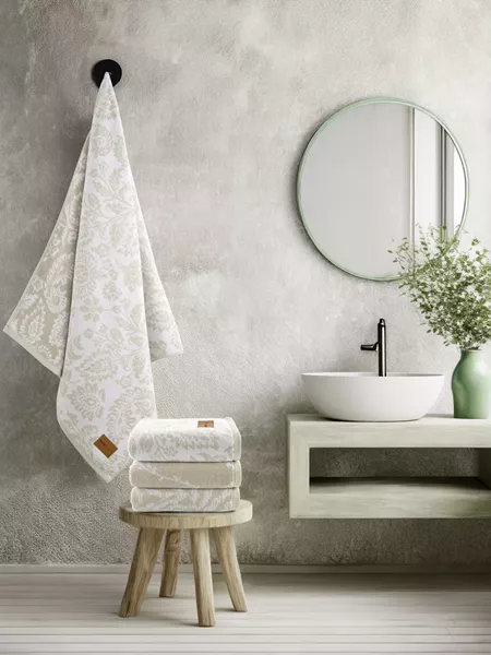 Το βαμβακερό σετ πετσέτες nasima φέρνει την ατμόσφαιρα της Ανατολής στο μπάνιο σας! Έχει μοναδικό μοτίβο με λαχούρια που είναι μια εξαιρετική επιλογή για όσους εκτιμούν την πλούσια πολιτιστική κληρονομιά και την αίσθηση της ζεστασιάς που προσφέρει. Οι πλούσιες λεπτές καμπύλες των λαχουριών αποδίδονται με μεγάλη λεπτομέρεια λόγω της νηματοβαφής και προσδίδουν μια πινελιά κομψότητας και φινέτσας. Το βελούρ φινίρισμα προσδίδει μια απίστευτη αίσθηση απαλότητας και πολυτέλειας στις πετσέτες, ενώ η χρωματική παλέτα του σετ επικεντρώνεται σε γήινες αποχρώσεις του μπεζ, που δίδει μια αίσθηση ζεστασιάς στο χώρο σας. Ανανεώστε το μπάνιο σας με μια πινελιά ανατολίτικης κομψότητας και διαχρονικού στυλ.