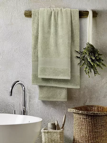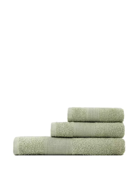 Η βαμβακερή πετσέτα oasis olive green διαθέτει ένα κομψό, μονόχρωμο σχέδιο σε απαλή πράσινη απόχρωση, που προσδίδει μια αίσθηση ηρεμίας και φρεσκάδας στο μπάνιο σας. Η διακριτική μπορντούρα στο τελείωμα, προσθέτει μια πινελιά φινέτσας στο λιτό της σχέδιο και ενισχύει την ανθεκτικότητα των άκρων. Η στιβαρή της ύφανση και η υψηλή ποιότητα των νημάτων εξασφαλίζουν απορροφητικότητα και μεγάλη αντοχή στην καθημερινή χρήση. Το λιτό και διακριτικό στυλ της πετσέτας oasis, την καθιστά ιδανική για κάθε διακόσμηση. Θα τη βρείτε σε 3 διαστάσεις, χεριών, προσώπου και μπάνιου, αλλά και σε σετ 3 τεμαχίων δεμένες με όμορφη κορδέλα για ένα όμορφο και οικονομικό δωράκι.
