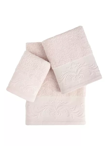 Το βαμβακερό σετ πετσέτας ambrose nude έχει σώμα με υπέροχη αφράτη υφή σε μια απαλή nude απόχρωση που θυμίζει την άμμο της ερήμου. Στολίζεται από εκλεπτυσμένη ζακάρ μπορντούρα με floral μοτίβο που προσδίδει μια αίσθηση φυσικής κομψότητας και καλλιτεχνικής φινέτσας στις πετσέτες. Η λεπτομέρεια της μπορντούρας τονίζει την υψηλή ποιότητα κατασκευής και την προσοχή στη λεπτομέρεια. aποτελούν μια εξαιρετική επιλογή για εσάς που αγαπάτε την minimal αισθητική και τις γήινες αποχρώσεις και εναρμονίζονται με κάθε στυλ διακόσμησης. Η συσκευασία τους είναι όμορφη και λιτή, με μια διακριτική κορδέλα, ώστε να την προσφέρετε σαν δωράκι σε αγαπημένους σας φίλους.