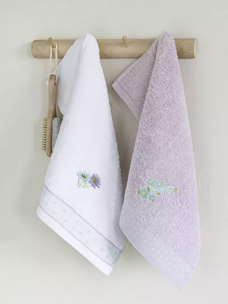Το σετ πετσέτες lavender αποτελείται από δύο πετσέτες χεριών σε ένα κομψό κουτάκι δώρου. Έχουν παστέλ χρωματισμούς και λεπτοδουλεμένο κέντημα με floral μοτίβο, ενώ το τελείωμά τους ολοκληρώνεται με διακριτική jacquard μπορντούρα, προσδίδοντας μια νότα κομψότητας και ρομαντισμού στο μπάνιο σας. Επιλέξτε το σετ "lavender" και χαρίστε στους αγαπημένους σας ένα δώρο πρακτικό και φινετσάτο.